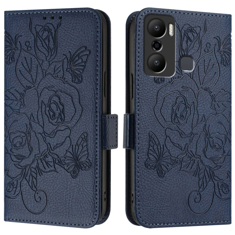Estuche de Cuero Antirrobo con RFID para Infinix Hot 20 Play en Relieve Rose (Azul Oscuro)