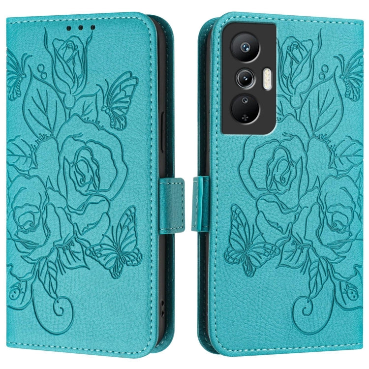 Estuche de Cuero Antirrobo para Infinix Note 30 Vip con Relieve Rose Rfid (Azul Claro)