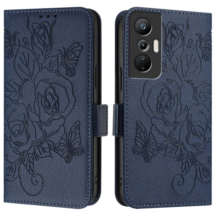 Estuche de Cuero Antirrobo para Infinix Hot 40/40 Pro con Rfid y Rose en Relieve (Azul Oscuro)