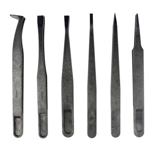 Pinzas de Punta Curva y Recta de Fibra de Carbono Antiestática Jf-S6In1 6 En 1 (Negro)