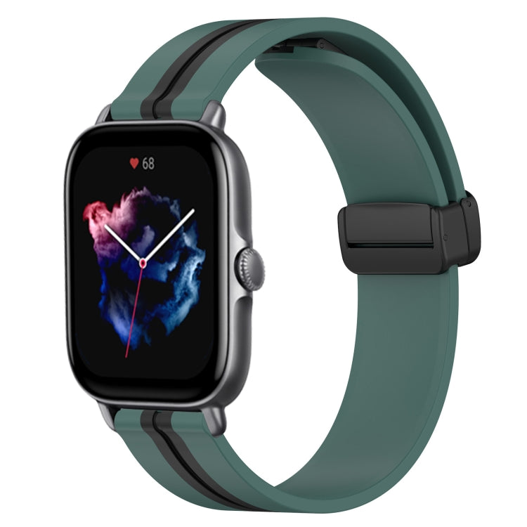 Correa de Reloj silicona para Amazfit GTS 4 20mm con cierre magnético plegable (Verde Oliva + Negro)