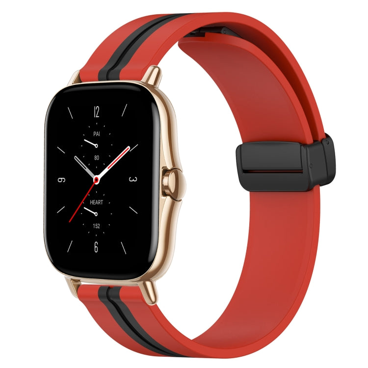 Correa de Reloj para Amazfit GTS 2 20mm Silicona con Cierre Magnético Plegable (Rojo + Negro)