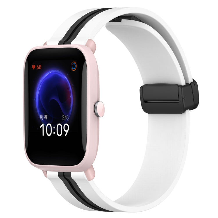 Correa de Reloj para Amazfit Pop 20mm Silicona con Cierre Magnético Plegable (Negro + Blanco)