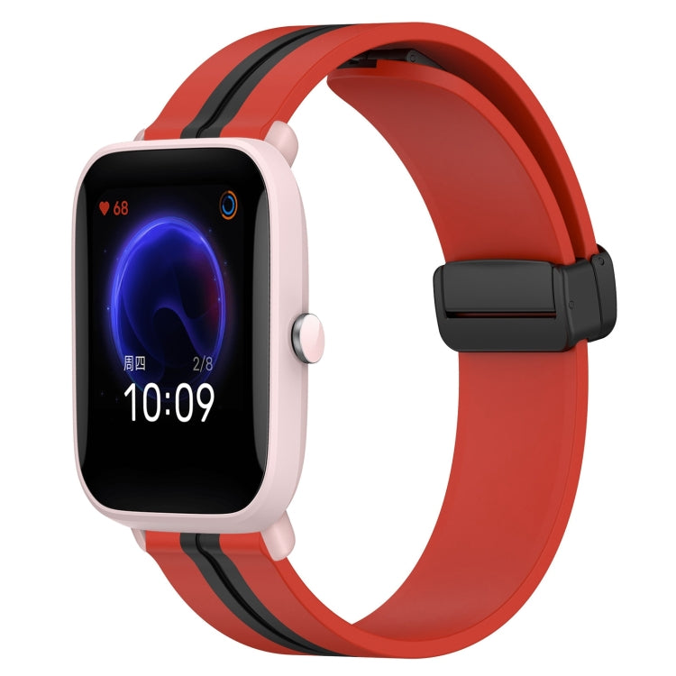 Correa de Reloj 20mm Amazfit Pop Silicona Cierre Magnético Plegable (Negro + Rojo)