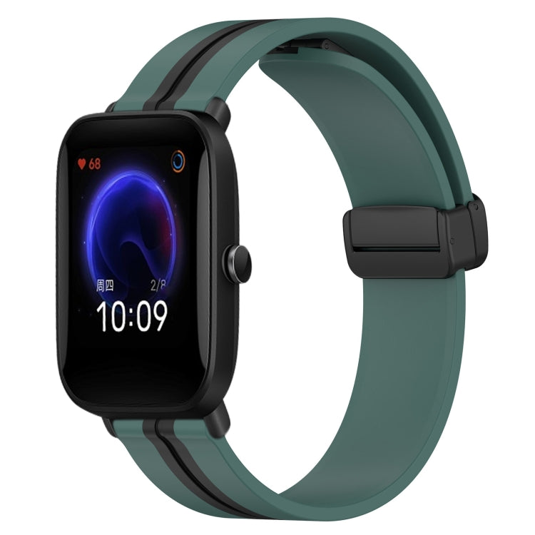 Correa de Reloj para Amazfit Pop 20mm Silicona con Cierre Magnético Plegable (Verde Oliva + Negro)