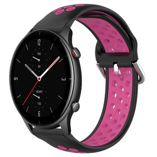 Correa de Reloj Amazfit GTS 3 20mm Silicona Deportiva Transpirable Perforada (Negro + Rosa)
