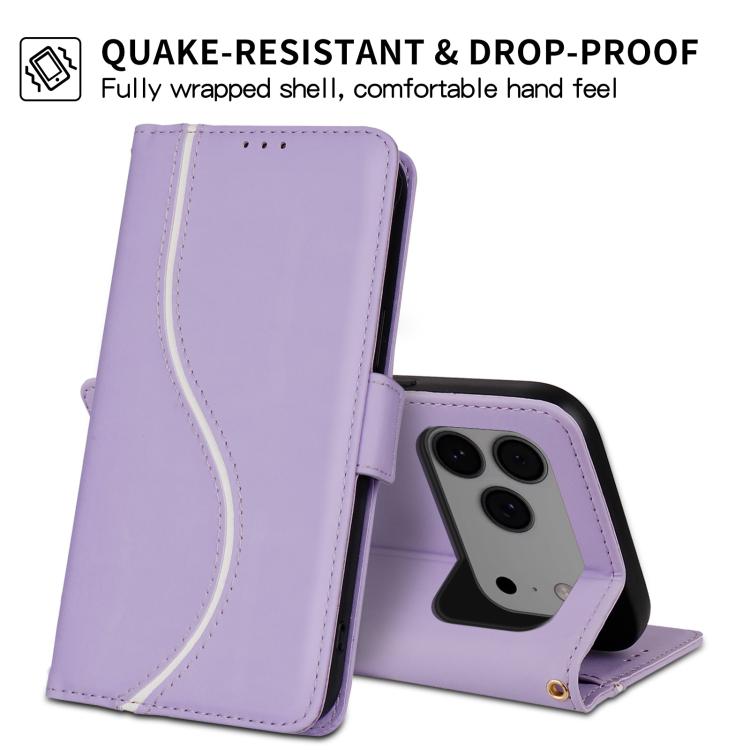 Funda de cuero con hebilla lateral y curva en forma de S para iPhone 17 Pro (morada)
