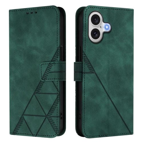 Funda de cuero con tapa y relieve 3D para iPhone 17 (verde oscuro)