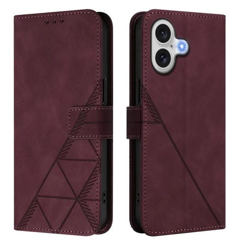 Funda de cuero con tapa y relieve 3D para iPhone 17 (rojo vino)