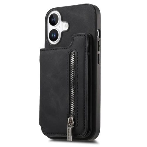 Funda retro con cremallera MagSafe para iPhone 17, tarjetero y monedero (negra)