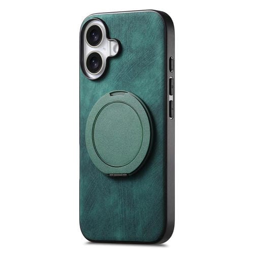 Funda de cuero retro con soporte giratorio redondo para iPhone 17 (verde)
