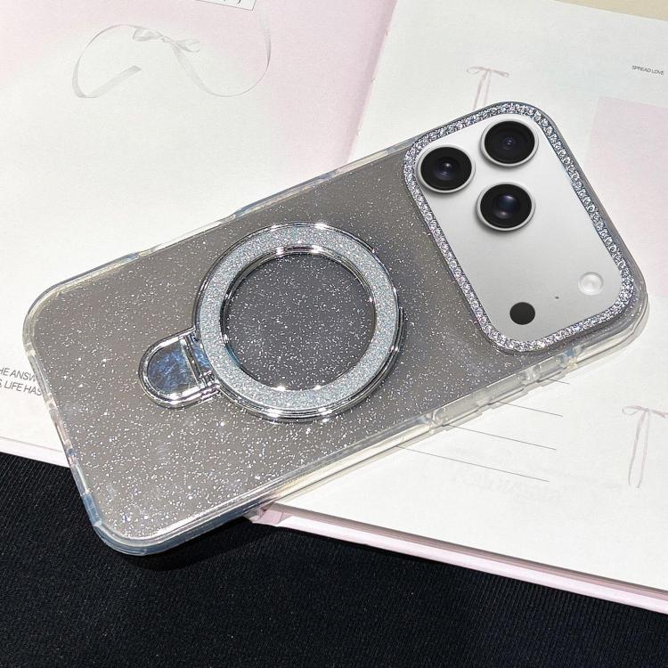 Funda MagSafe con diamantes brillantes degradados para iPhone 17 Pro (blanca)