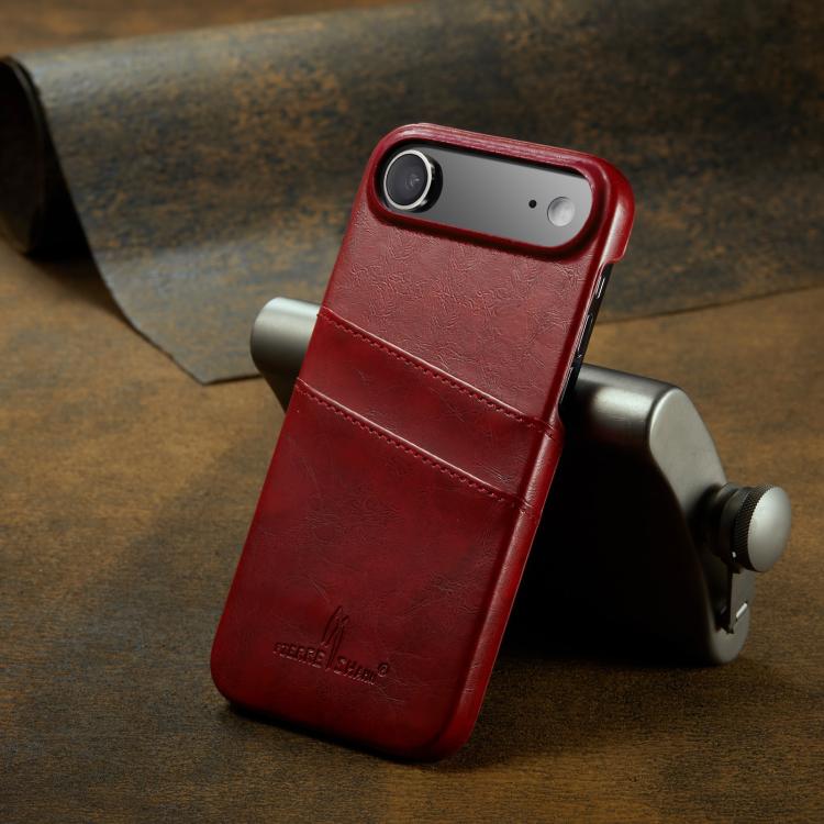 Funda de piel sintética con textura retro de cera de aceite Fierre Shann para iPhone Air (roja)