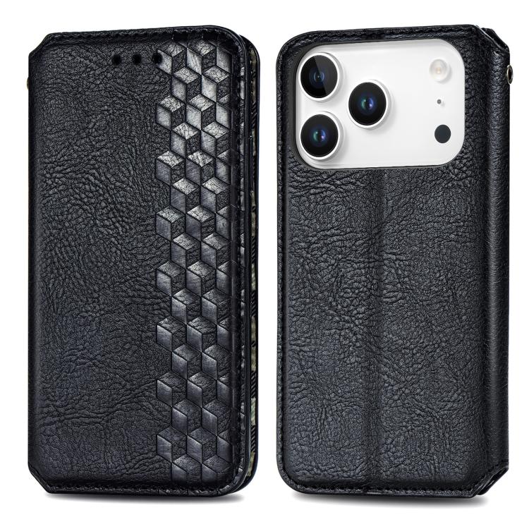 Funda de cuero magnética con diseño de cuadrícula cúbica para iPhone 17 Pro Max (negra)