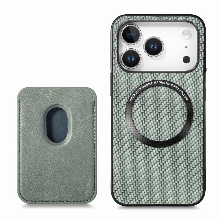 Funda Magsafe de cuero y fibra de carbono para iPhone 17 Pro Max (verde)
