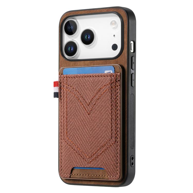 Funda de piel con textura vaquera para iPhone 17 Pro Max con ranura para tarjetas (marrón)