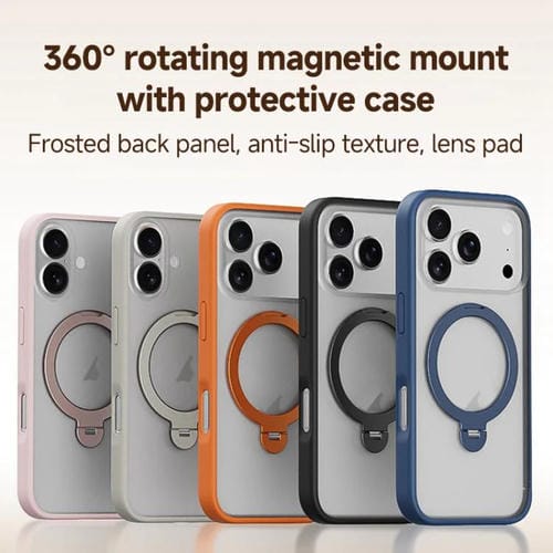Funda híbrida de TPU y PC Magsafe para iPhone 17 ZGA con soporte pivotante de 360 grados (gris)