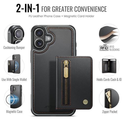 Funda para iPhone 17 JEEHOOD J12 con cremallera RFID MagSafe (negra)