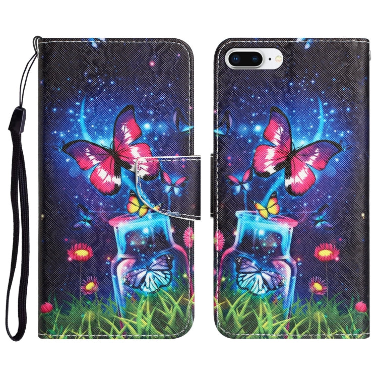 Colored drawing leather phone case for iPhone 7 Plus / 8 Plus (bottle butterfly)