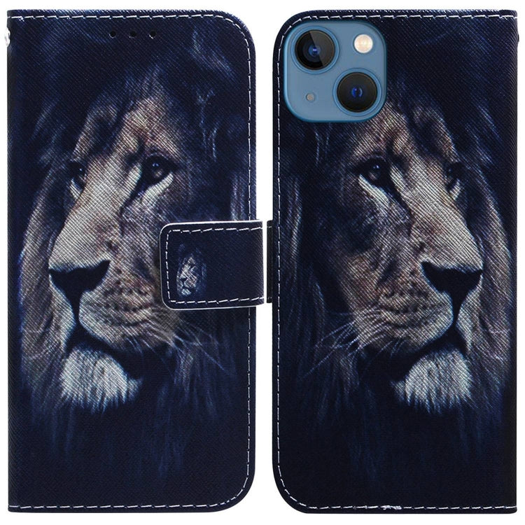 Estuche de Teléfono iPhone 14 Plus Cuero con Tapa Dibujo Coloreado (León)
