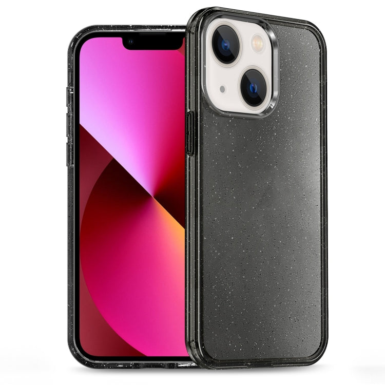 Estuche híbrido para teléfono iPhone 13 con PC Glitter Powder TPU (Negro)