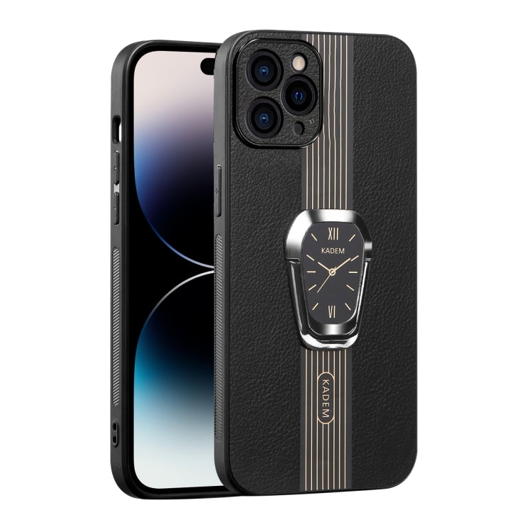 Estuche Magnético para iPhone 14 Pro Max con Parte Trasera de Cuero Litchi y Soporte (Negro)