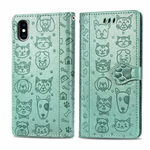 Estuche para iPhone X / Xs Cartoon Sakura Cat Cuero En Relieve (Púrpura)