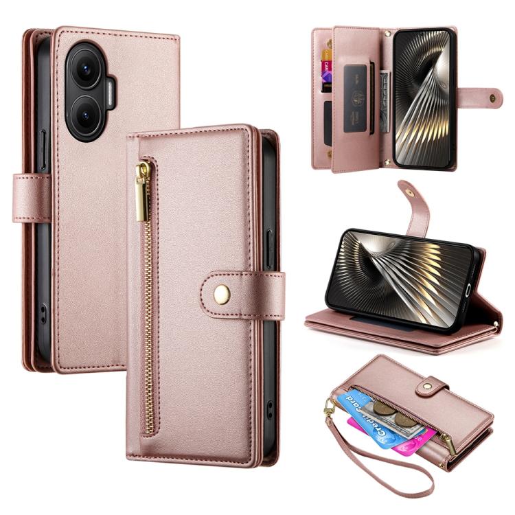 Funda de cuero con cremallera y ranura para tarjetas para Redmi Turbo 4 Pro y Xiaomi Poco F7 (rosa)