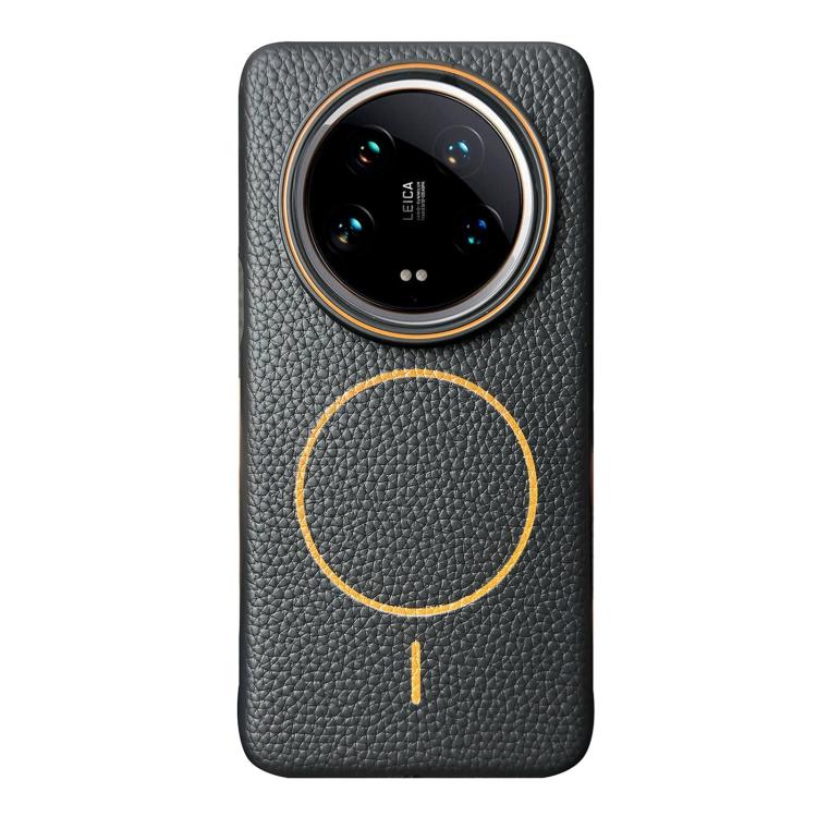 Funda ultrafina de TPU con diseño circular MagSafe y textura de lichi para Xiaomi 14 (negro y naranja)