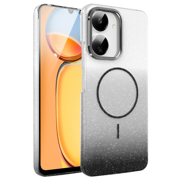 Funda MagSafe a prueba de golpes para Xiaomi Redmi 13C 4G/5G con purpurina dorada y degradado (negro)