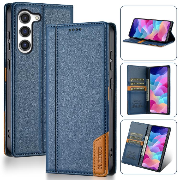 Funda de cuero con tapa magnética y costuras RFID para Samsung Galaxy S24 FE 5G N.BEKUS P3 (azul)