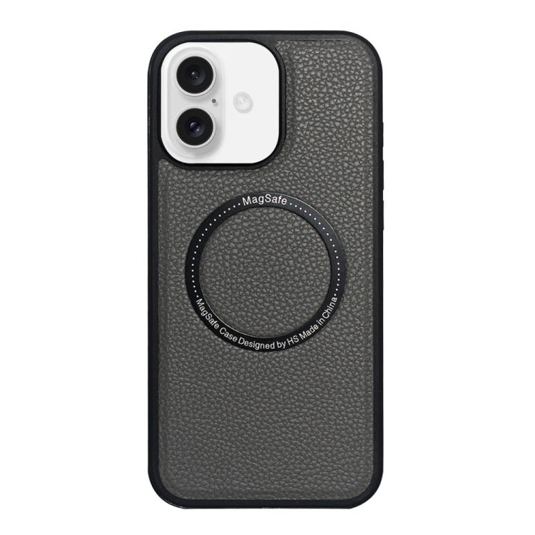 Funda trasera MagSafe de PU con textura de lichi para iPhone 16 (gris)