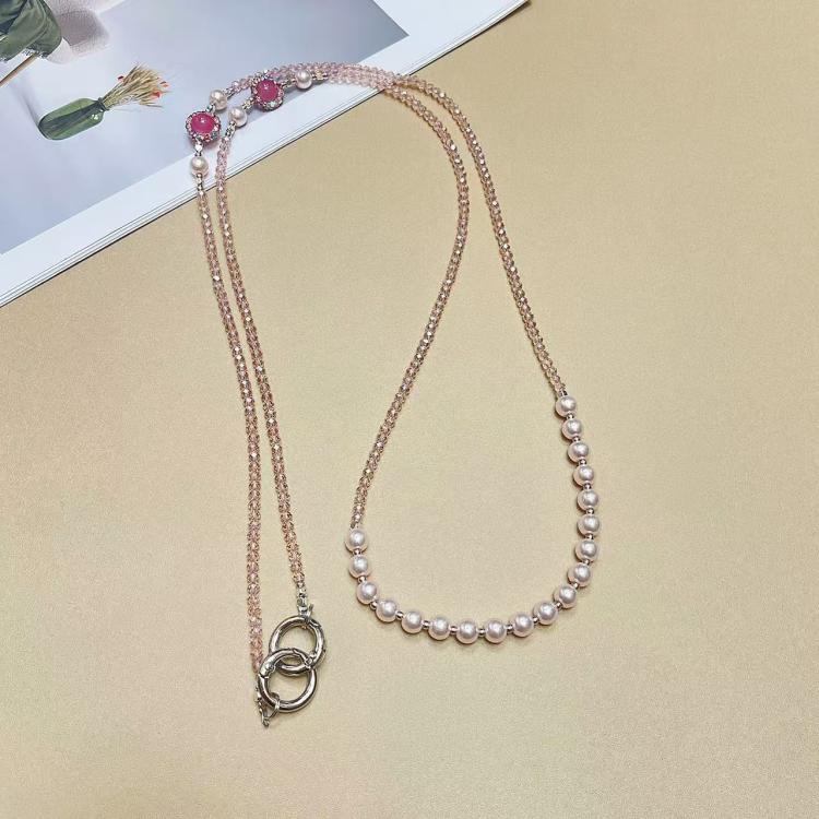 Cadena larga para teléfono móvil con perla de cristal (rosa perlado)