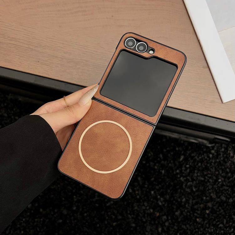 Funda MagSafe con textura Crazy Horse para Samsung Galaxy Z Flip6/Flip7 FE (marrón)
