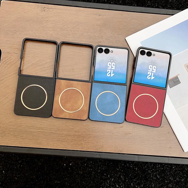 Funda MagSafe con textura Crazy Horse para Samsung Galaxy Z Flip5 (marrón)