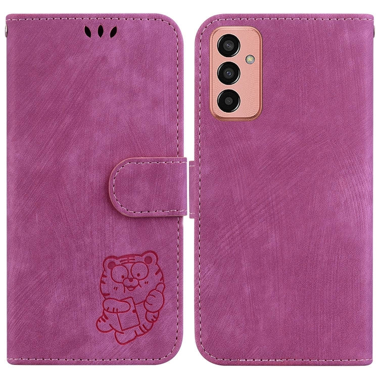 Para Samsung Galaxy M13 4G Funda de cuero con relieve Little Tiger (rojo rosa)