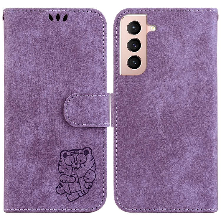 Para Samsung Galaxy S21 5G Funda de cuero con relieve Little Tiger (pĂșrpura)