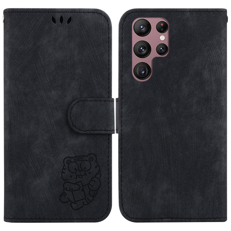 Para Samsung Galaxy S22 Ultra 5G Funda para teléfono de cuero con relieve Little Tiger (negro)