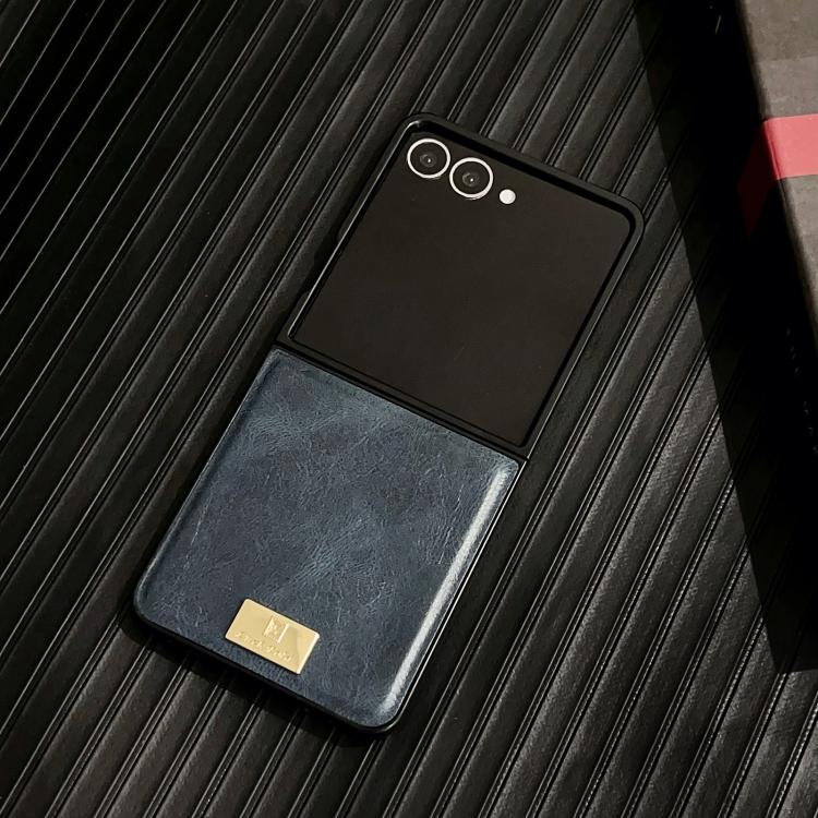 Funda de PU con textura Crazy Horse para Samsung Galaxy Z Flip7 5G (azul)