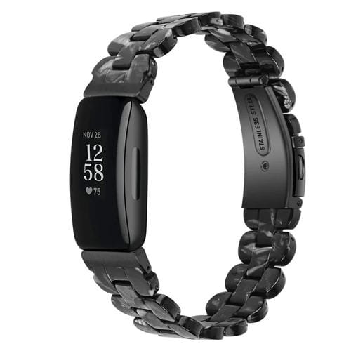 For Fitbit Inspire 3 Oval Resin Replacement Watch Band (Black Flower)