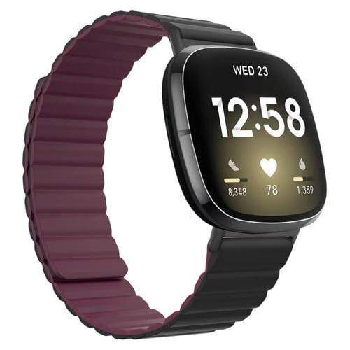 Correa Universal Silicona Magnética para Fitbit Versa 3 y Sense (Negro Vino)
