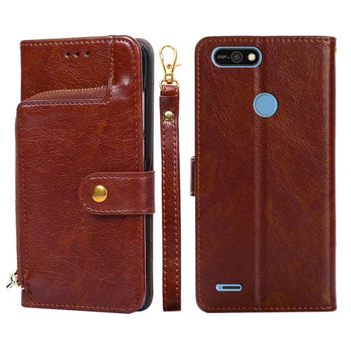 Bolsa de Cremallera Case de Cuero para Tecno Pop 2/Pop 2 F/Pop 2 Pro/Pop 2 Power/Itel P13/B1F (Marrón)