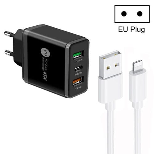 Cargador Usb Multipuerto 45W Pd25W + 2 X Qc3.0 con Cable Usb A 8 Pines (Negro)