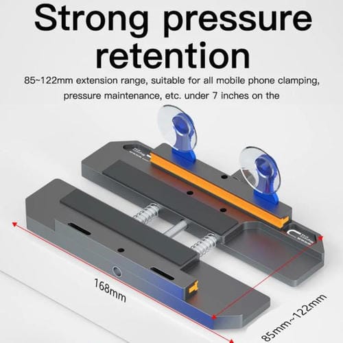 El accesorio Maant H4 es una herramienta especializada para la fijación y mantenimiento de presión en Teléfonos celulares con Pantallas laterales, especialmente diseñada para dispositivos de menos de 7 pulgadas. Este accesorio permite sujetar de forma segura el Teléfono durante procesos de reparación, facilitando la extracción de la Pantalla y la Cubierta Trasera sin causar daños. Su diseño incorpora amortiguación de esponja superior e inferior para proteger el dispositivo contra impactos y arañazos, y cuenta con ranuras específicas para la Cámara y Tarjetas, optimizando la precisión en la manipulación y detección durante la reparación. Con un rango de extensión ajustable entre 85 y 122 mm, es compatible con la mayoría de modelos de Teléfonos Móviles actuales que cuentan con Cristal Trasero, ofreciendo una sujeción firme y estable.