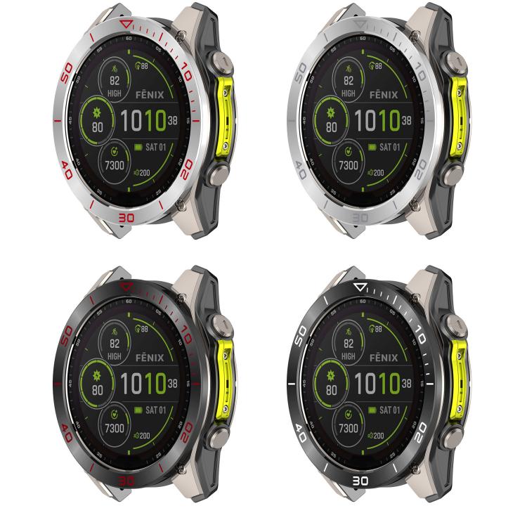 Anillo protector de acero inoxidable para reloj Garmin Tactix 8 Solar de 51 mm con zona horaria (negro y rojo)