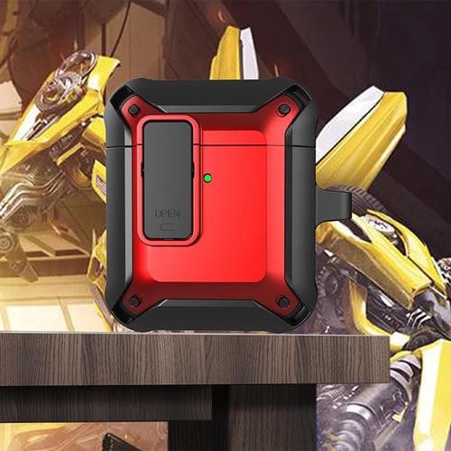 Auriculares inalámbricos funda protectora silicona a prueba de golpes con interruptor para AirPods 1/2 (Rojo Negro)