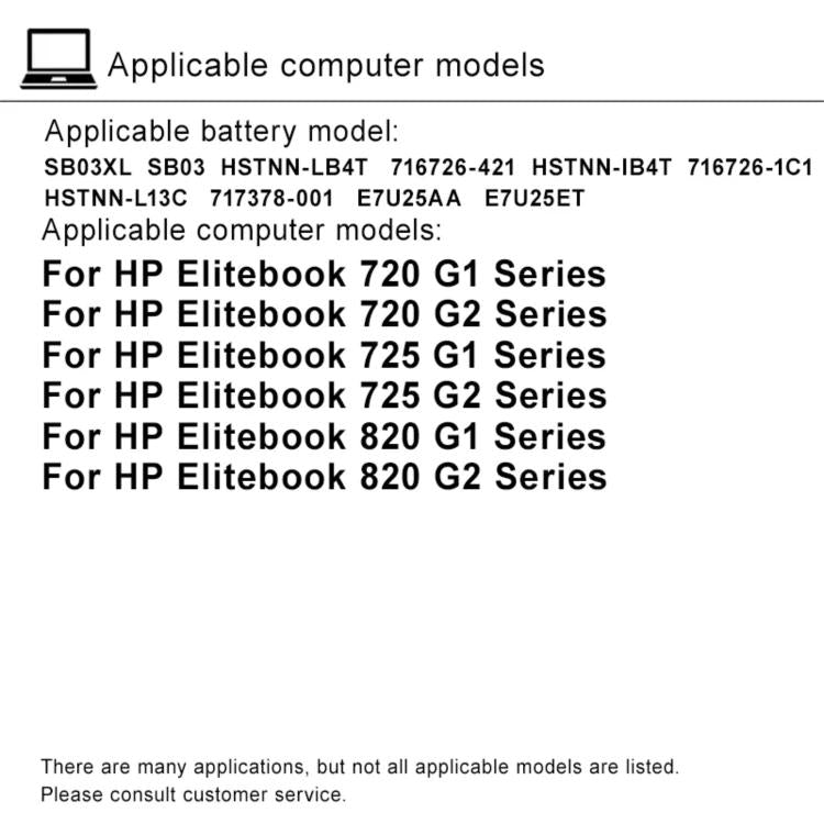 4. Número de pieza de repuesto: SB03XL, SB03, HSTNN-LB4T, 716726-421, HSTNN-IB4T, 716726-1C1, HSTNN-L13C, 717378-001, E7U25AA, E7U25ET