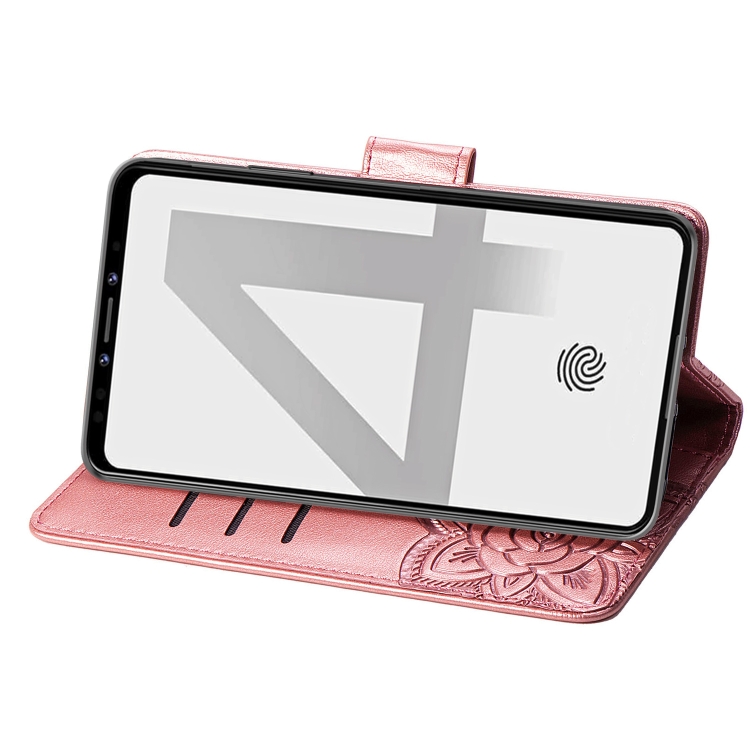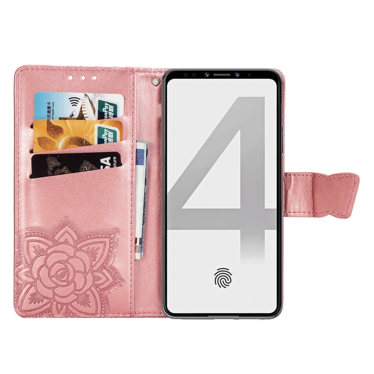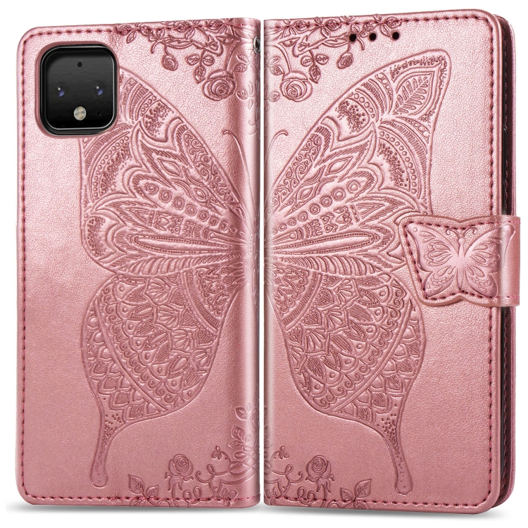 Funda de Cuero Butterfly Love Flowers para Google Pixel 4 con Tapa Horizontal, Soporte, Ranuras y Cordón (Oro Rosa)