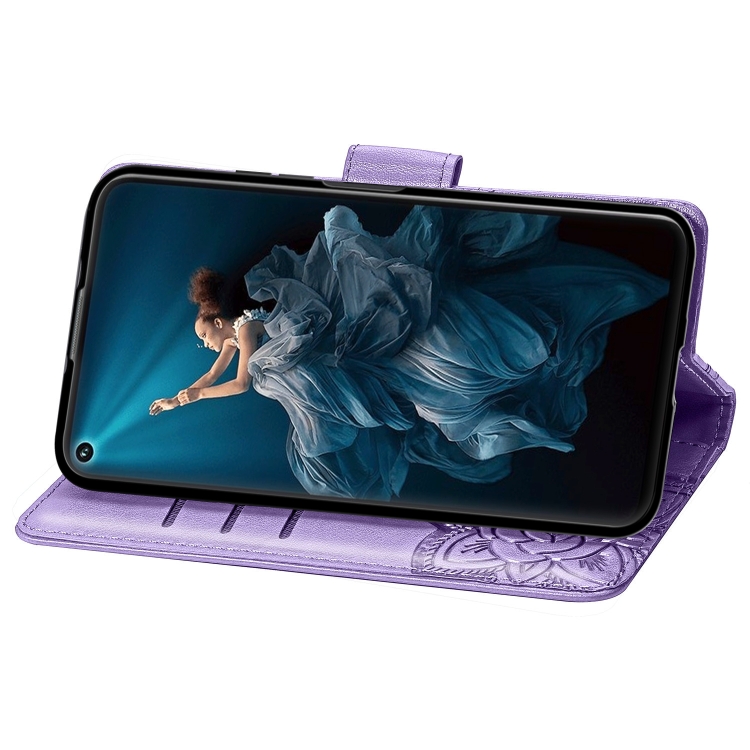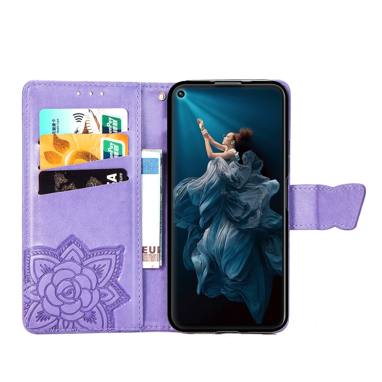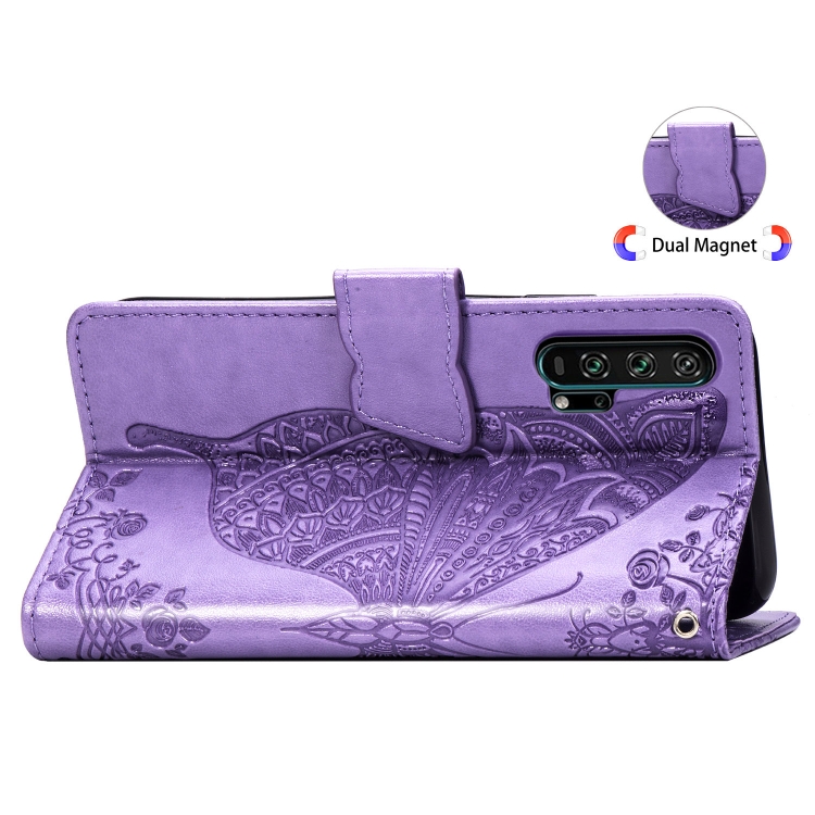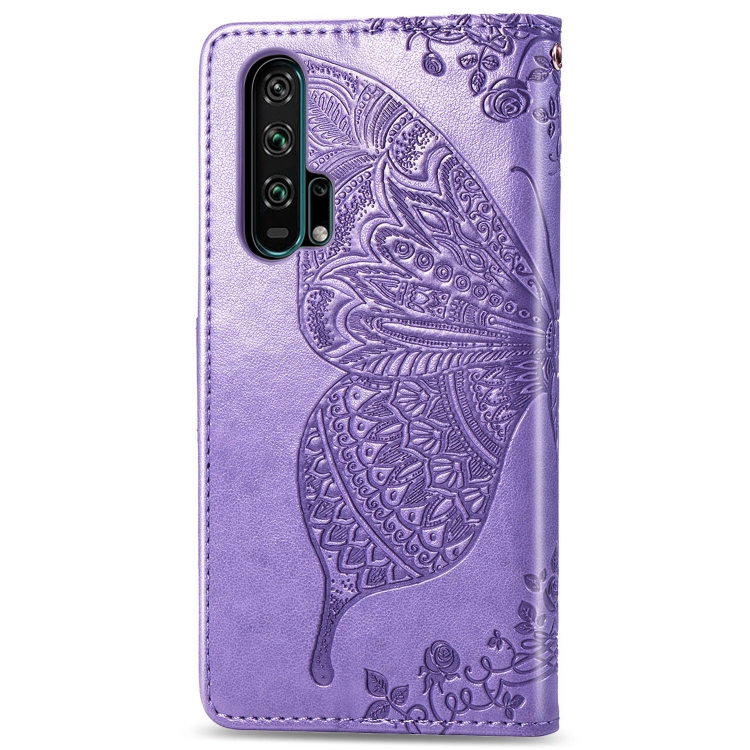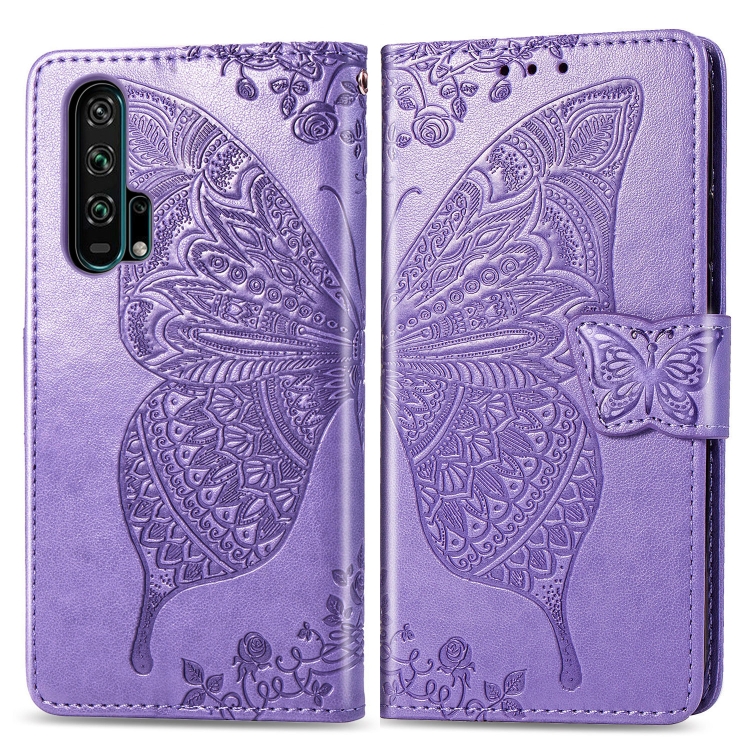 Funda de Cuero Butterfly Love Flowers para Huawei Honor 20 Pro con Soporte, Ranuras, Billetera y Cordón (Light Purple)