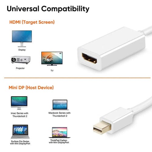 • Compatible con dispositivos que cuentan con Puerto Mini DisplayPort, especialmente MacBook, MacBook Pro y MacBook Air